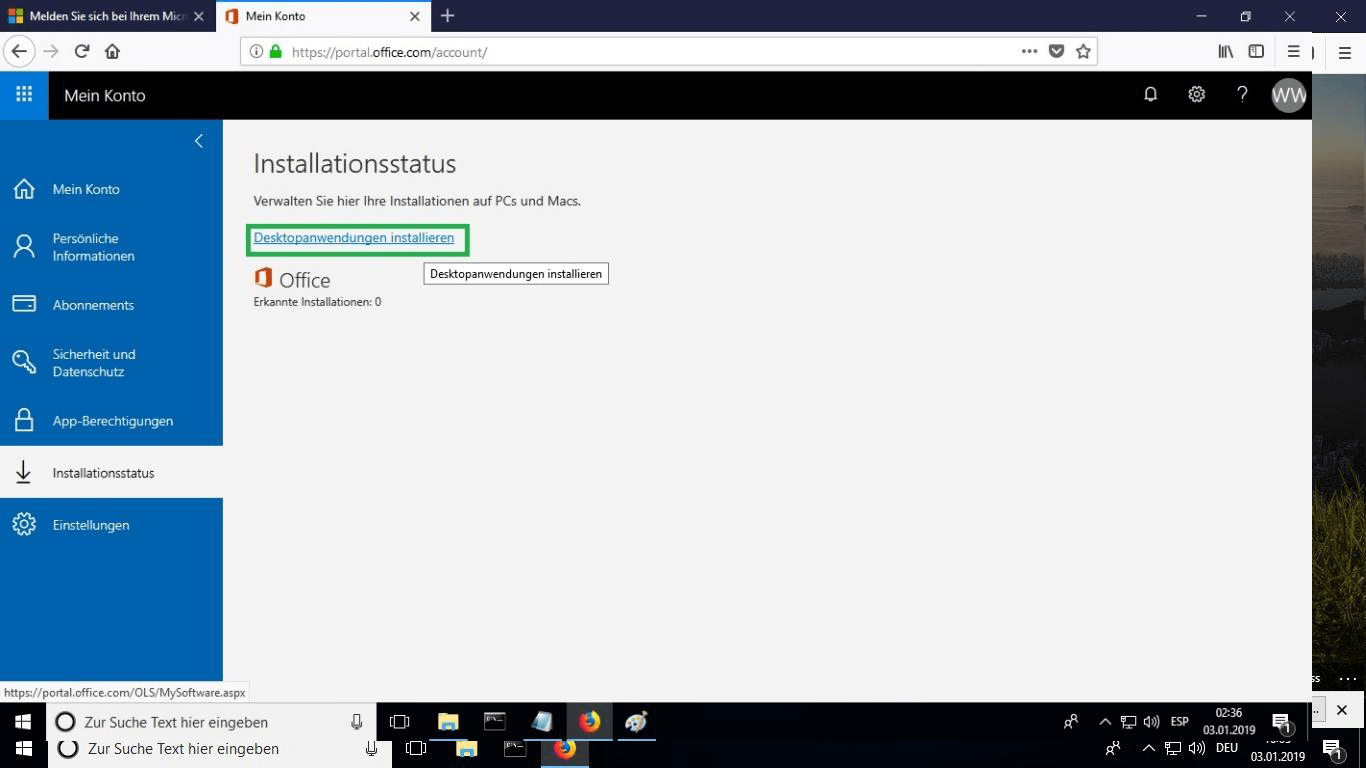 Under “Installation Status” click “Install Desktop Applications.” This option will vary if you are installing the product on your tablet or mobile device.